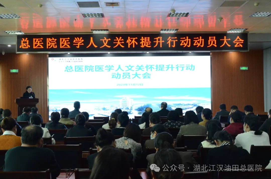 2024年11月12日下午,我院召开医学人文关怀提升行动动员会。院党委班子、党支部书记、科室主任、护士长共计160余人参加。会议由院党委副书记、纪委书记文佐娟主持。