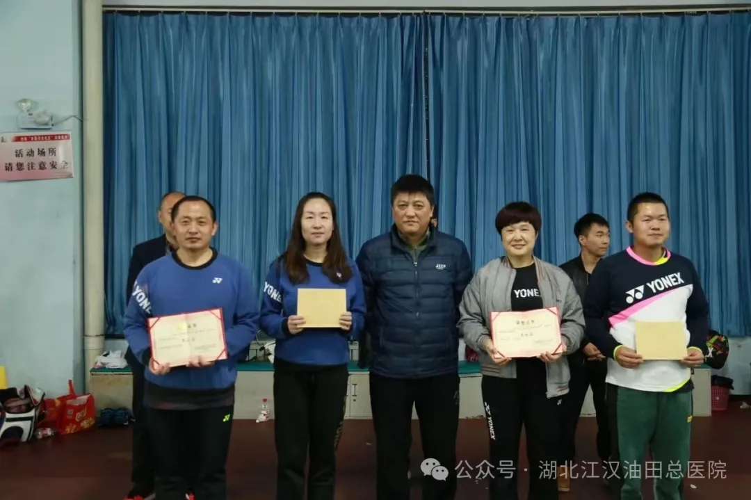 城市运动会消息。在11月9日-11日举办的潜江市首届城市运动会中,我院选派的三名羽毛球选手加入卫健代表队 ,帮助队伍取得团体赛冠军,并勇夺单项赛女双冠军。