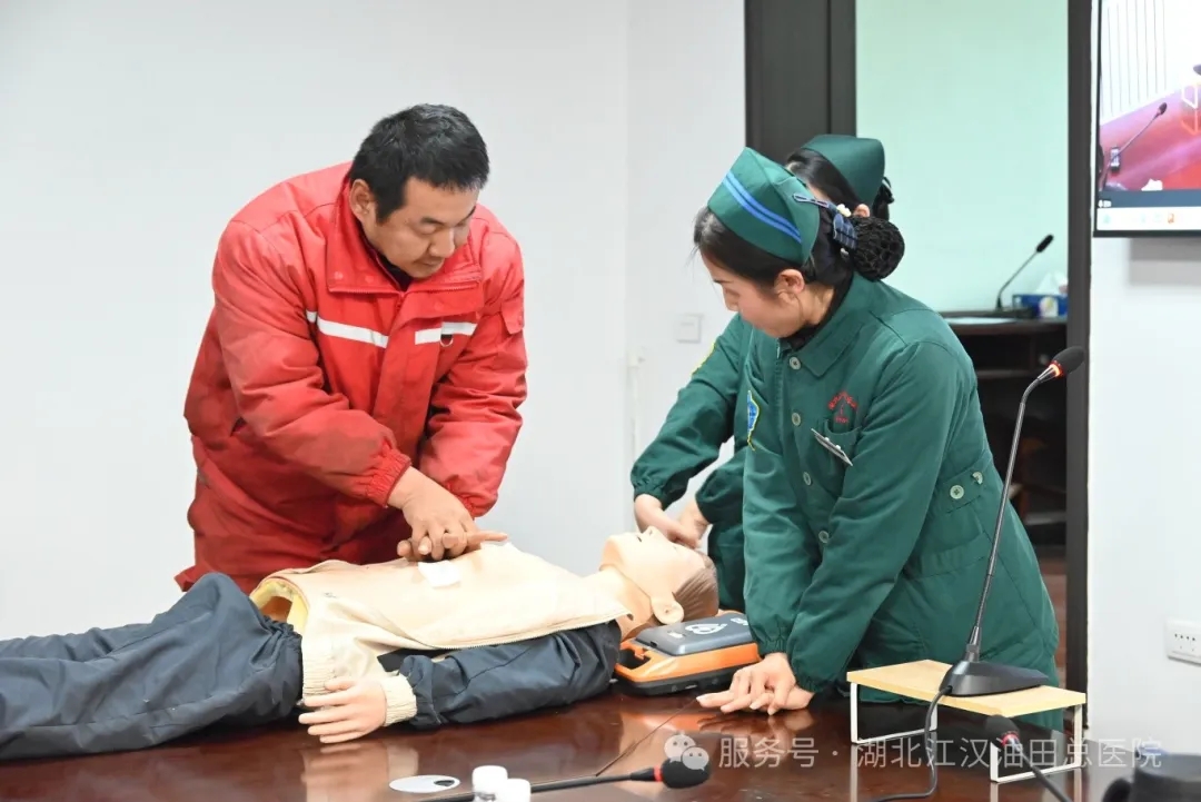 随后,李群护士长和护士陈进为员工们带来了生动精彩的 AED 讲解和心肺复苏急救知识授课,她们以通俗易懂的语言和形象直观的演示,详细传授了相关的专业技能,并指导员工们进行 AED 设备的操作练习以及心肺复苏的模拟实践。现场互动氛围热烈。