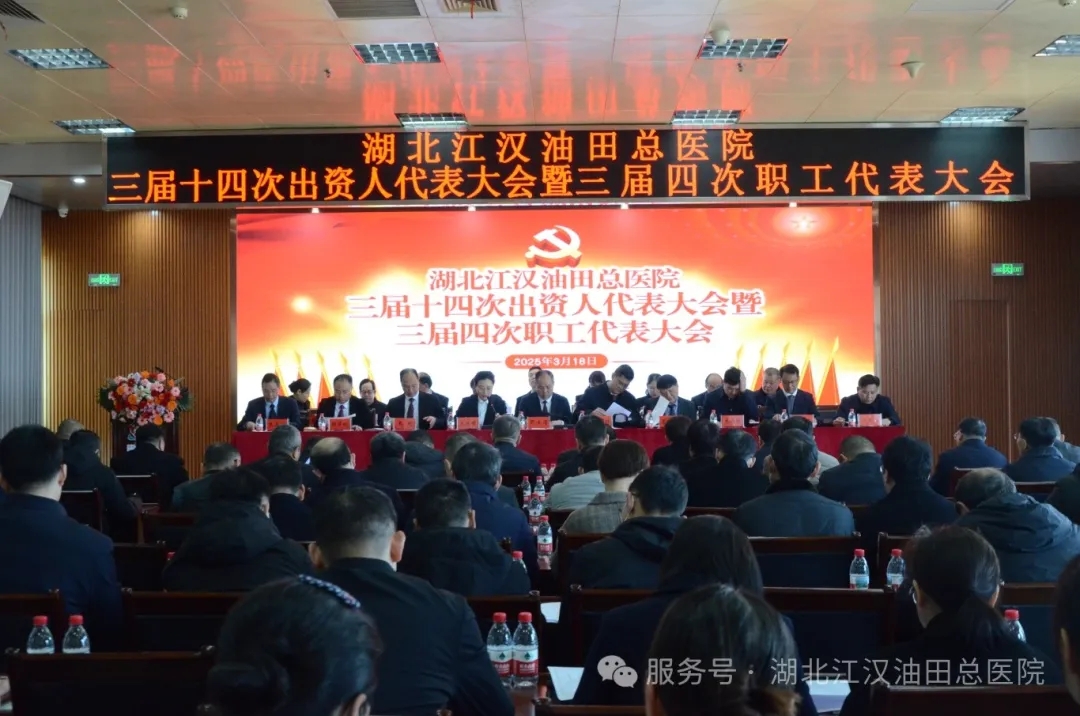 3月18日,油田总医院三届十四次出资人代表大会暨三届四次职工代表大会在门诊楼12楼学术报告厅召开。全体院领导、出资人代表、职工代表等123人参加会议。