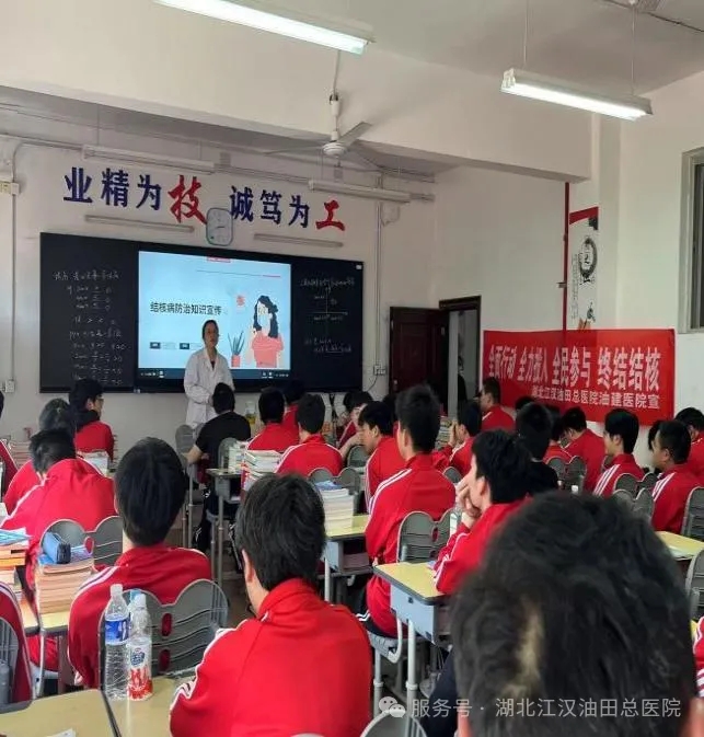 活动伊始,我院医护团队为学生们带来了一场生动的结核病防治知识讲座。深入浅出地讲解了结核病的发病原理、传播途径、常见症状以及预防方法,着重强调,学校作为人员密集场所,结核病防控至关重要,早发现、早诊断、早治疗是关键。