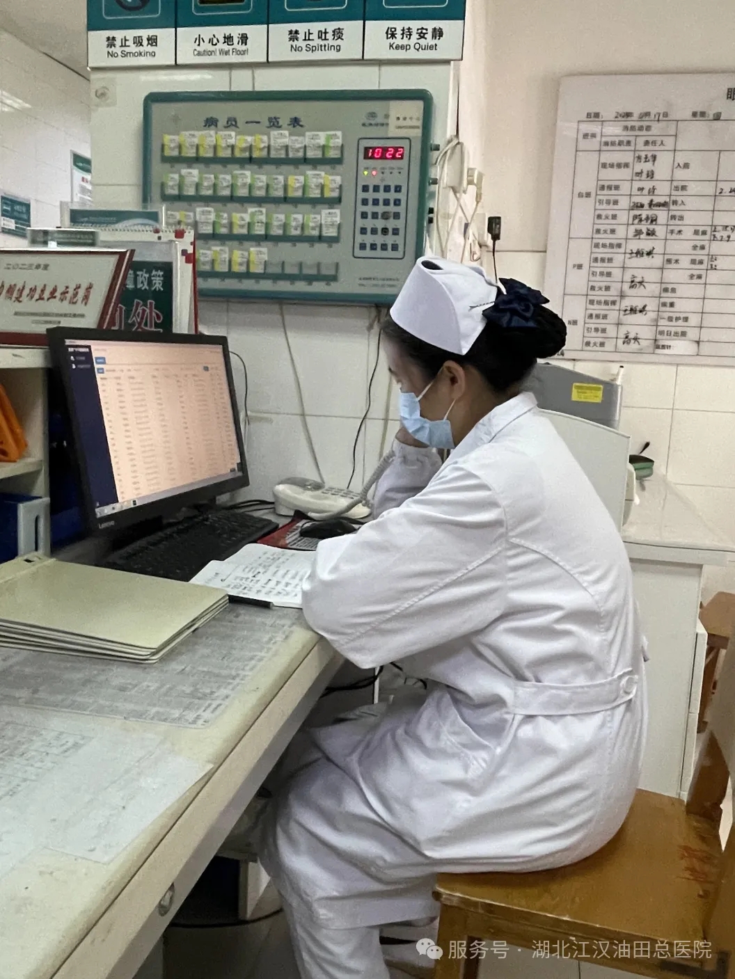 术后患者常因眼部纱布影响活动动。眼科护理团队不仅帮助没有陪伴的患者离床行动,对于患者视野被遮蔽看不清输液滴数的情况,护士们还利用输液报警器让他们能安心地闭眼休息。