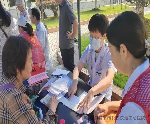 油建医院医护人员也积极投入到义诊活动中。他们为35至64岁居民免费三高筛查以及65 岁以上老年人的全面身体检查。通过这些基础检查,能够及时发现居民潜在的健康问题,做到早预防、早诊断、早治疗。