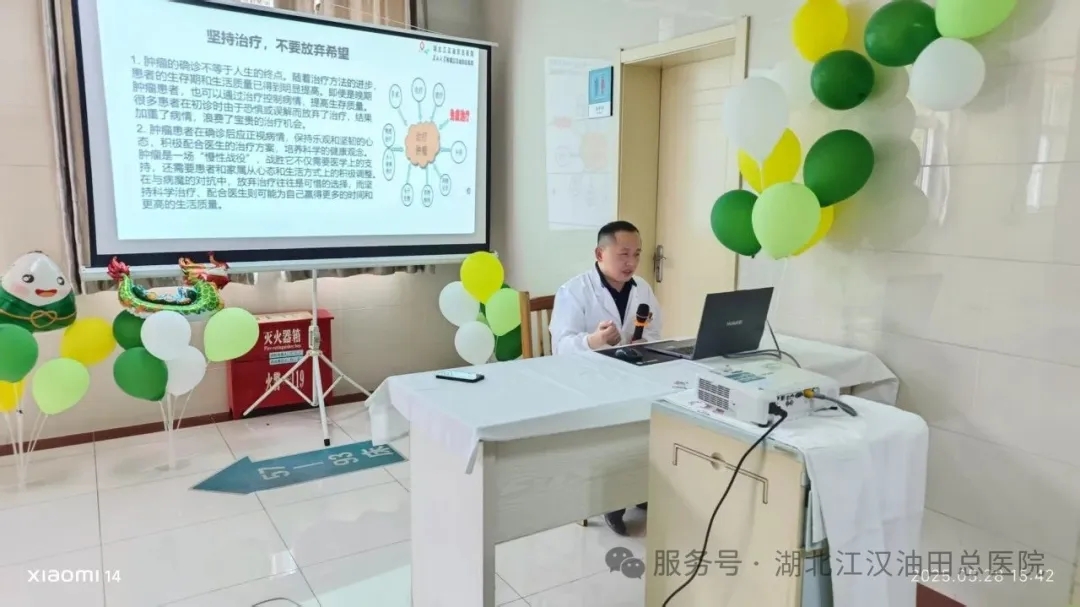 黄俊平主任、曾莉芳护士长向参与活动的患者进行了科普知识普及。表达了专业击碎谣言,让患者理解化疗、放疗、免疫治疗的原理和副作用,减少恐惧心理,积配合治疗。引导患者识别和处理化疗后的现象,搭建医患信任桥梁。