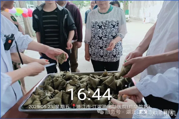 运动会结束后,食堂工作人员送来了一盘粽子,依次为大家分发香甜的粽子,一枚枚小小的粽子给患者们送去平安健康的美好祝福。