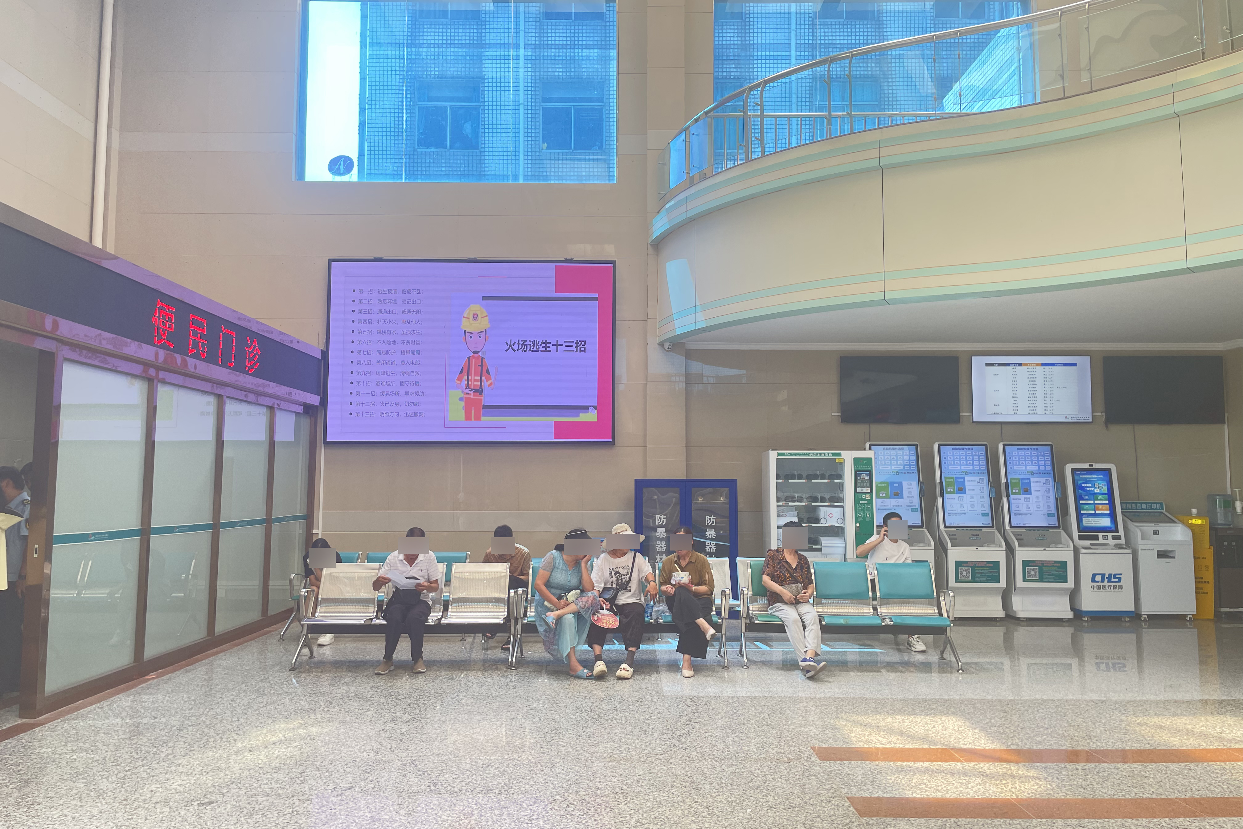环境改造后,门诊大厅左侧的患者休息区更开阔。自助服务终端紧密排列,无论是挂号缴费,还是查询打印,动动手指即可轻松完成,能有效减少患者排队等候时间。