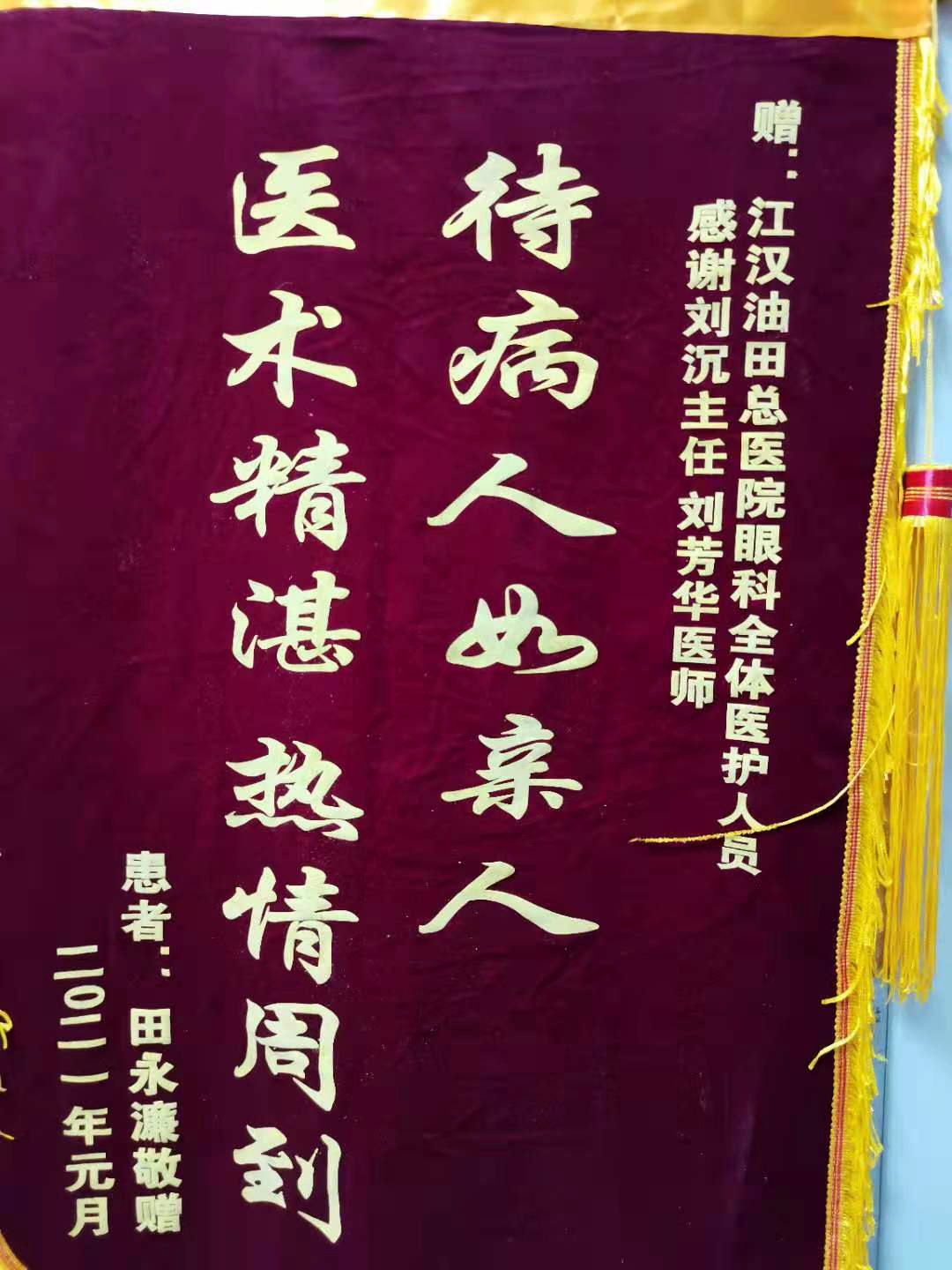 眼科住院患者向科室赠送锦旗,住院号1005994*