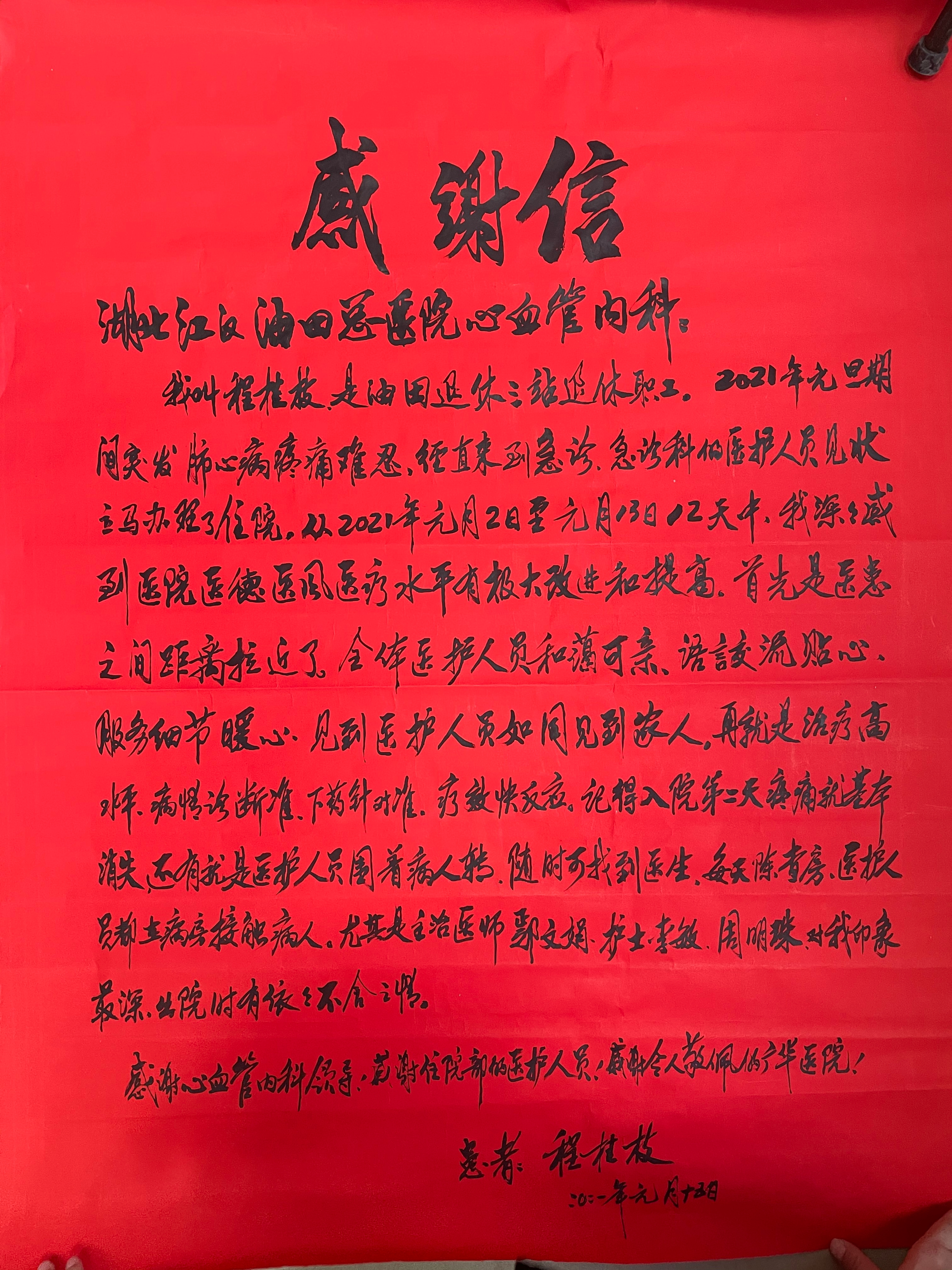 心血管内科住院患者向科室赠送感谢信。