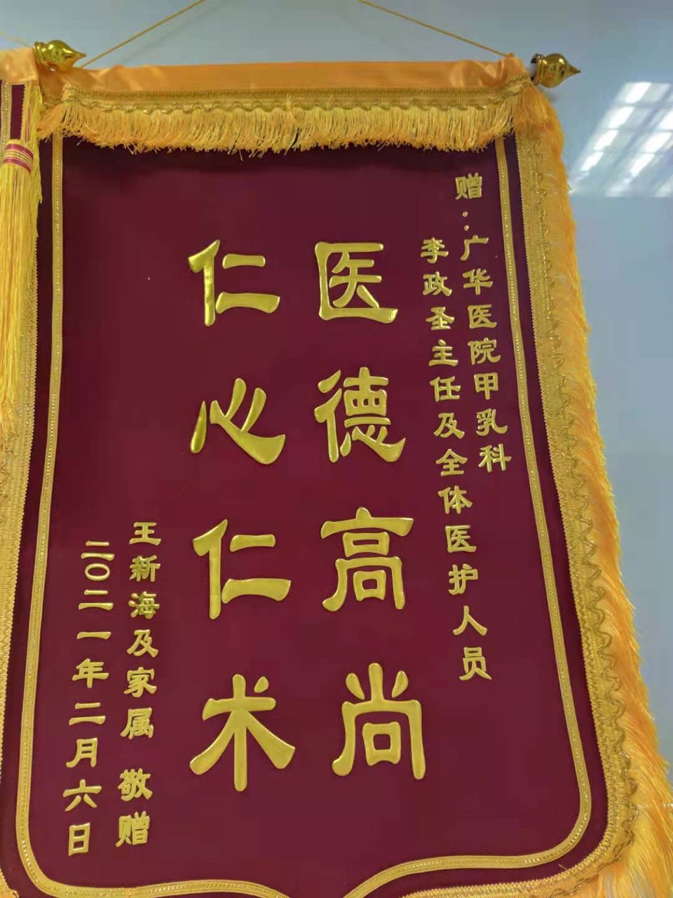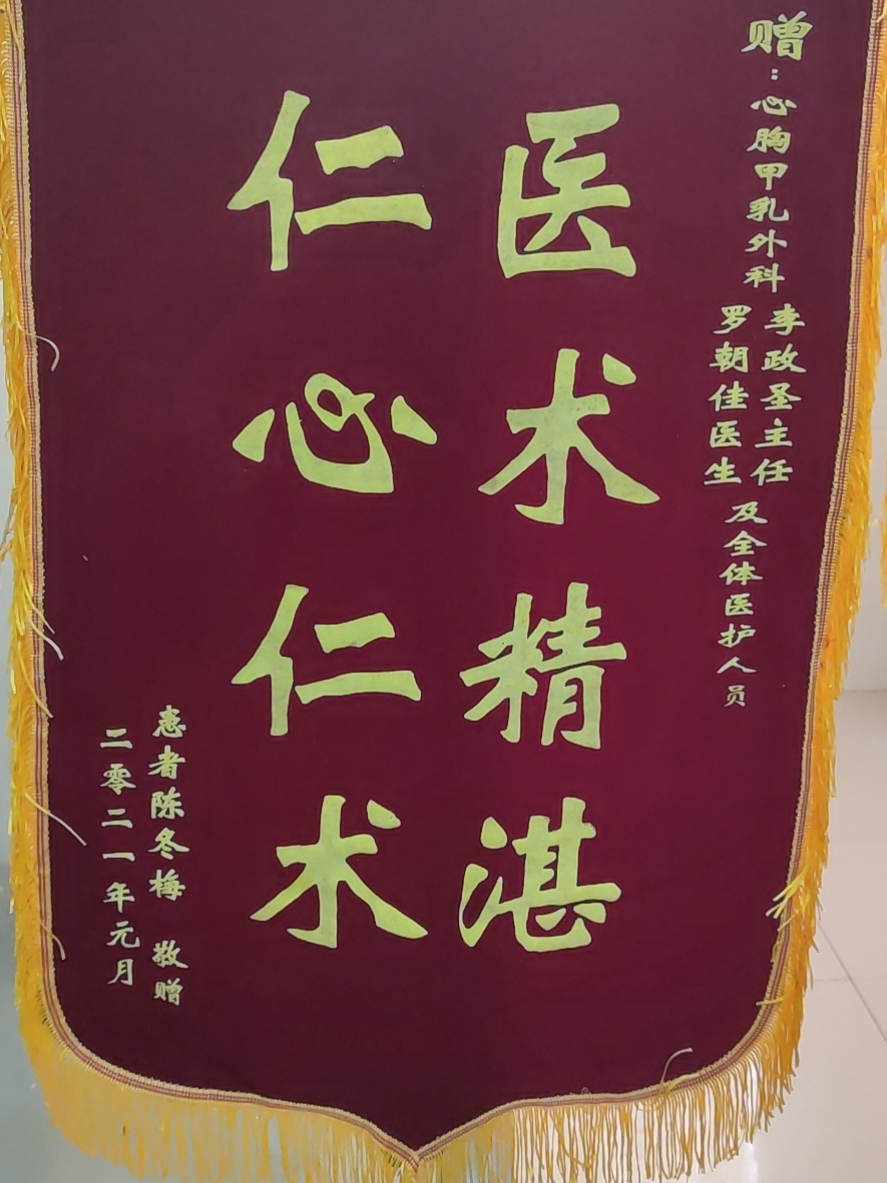 心胸甲乳外科患者向科室赠送锦旗,住院号1001713*