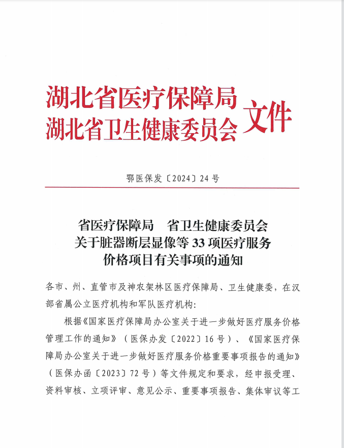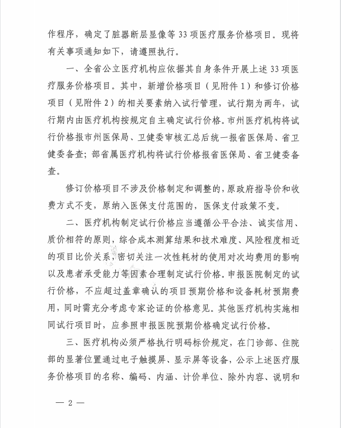 关于脏器断层显像等33项医疗服务价格项目有关事项通知