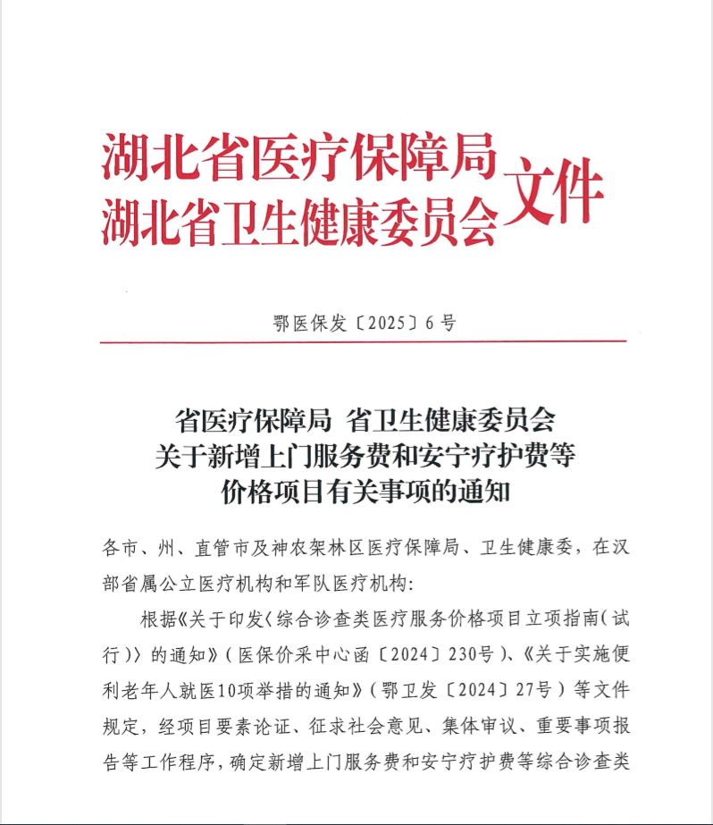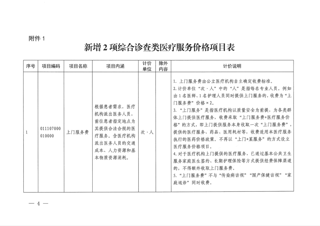 省医疗保障局 省卫生健康委关于新增上门服务费和安宁疗护费等价格项目有关事项的通知