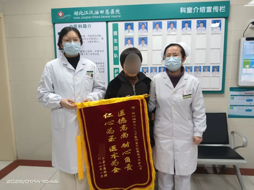 一面“仁心为玉,医术为金”的锦旗,承载着一份沉甸甸的信任与谢意;20天的精准施治,为危重患者续写了生命轨迹。近日,我院中医科董雪妍医生及医护团队,收到了肺癌脑转移患者张女士(化名)家属送来的锦旗,背后是一段从昏迷病危到行走如常的康复佳话。
