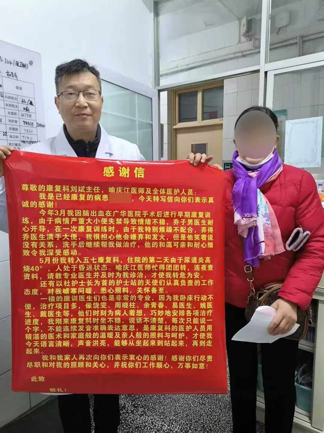 在感谢信中,张爷爷清晰记录着许多医护的名字:饶雯、周晓柱、余青春……这些被铭记的名字,承载了医患之间细水流淌般的温情,也令康复医学科团队备受鼓舞。