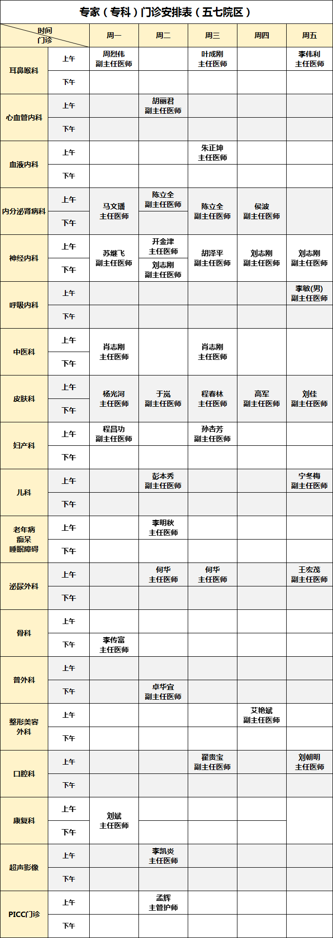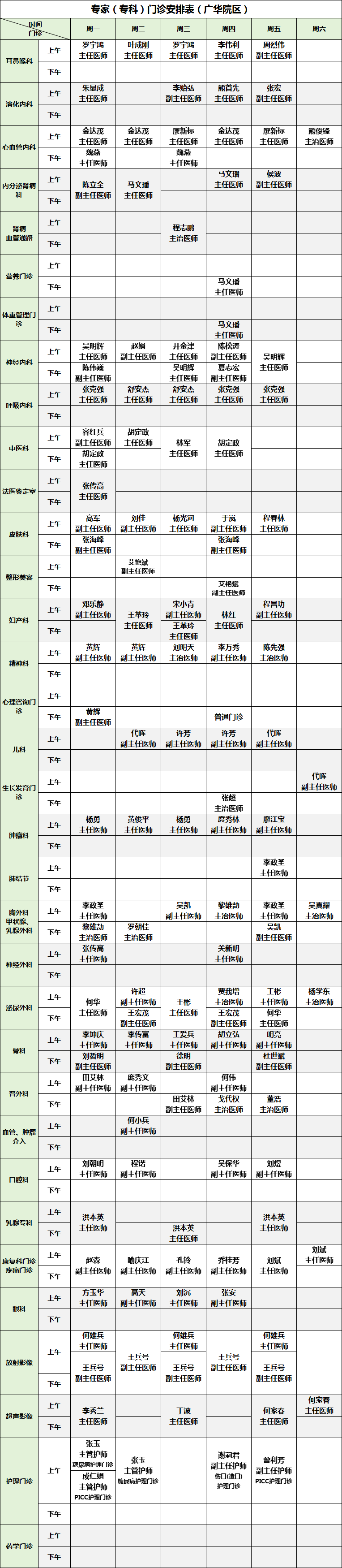 为方便患者安排就医时间,我院公布2026年3月16日-20日广华院区、五七院区专家(专科)门诊安排如下: