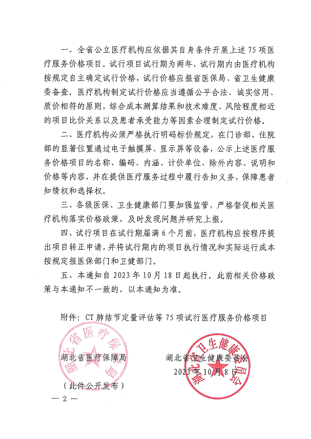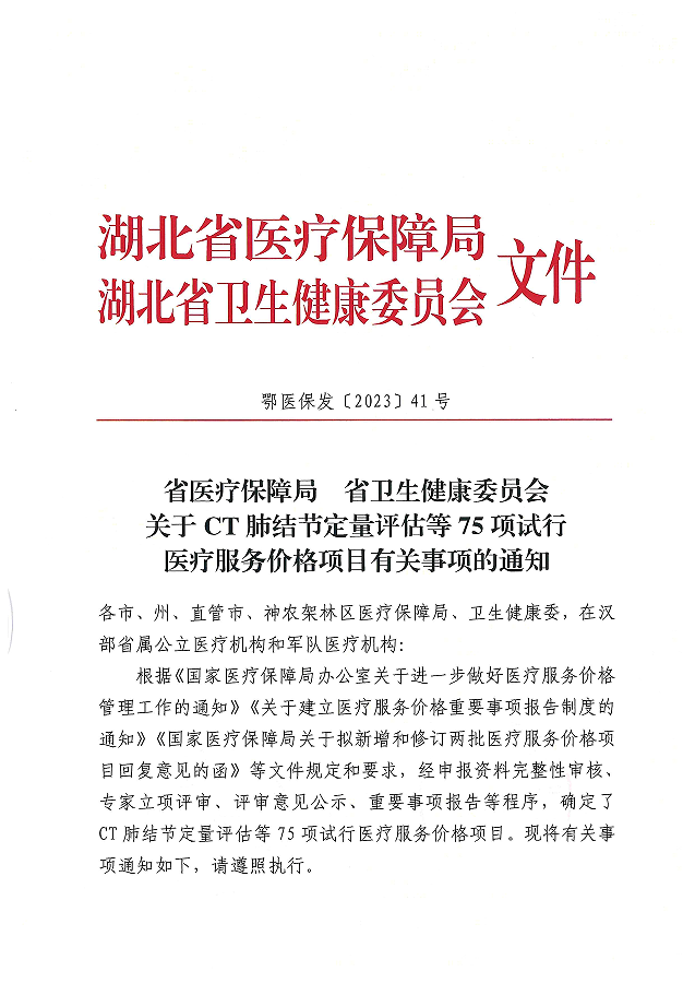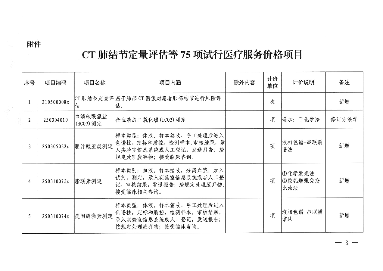 关于CT肺结节定量评估等75项试行医疗服务价格项目有关事项的通知