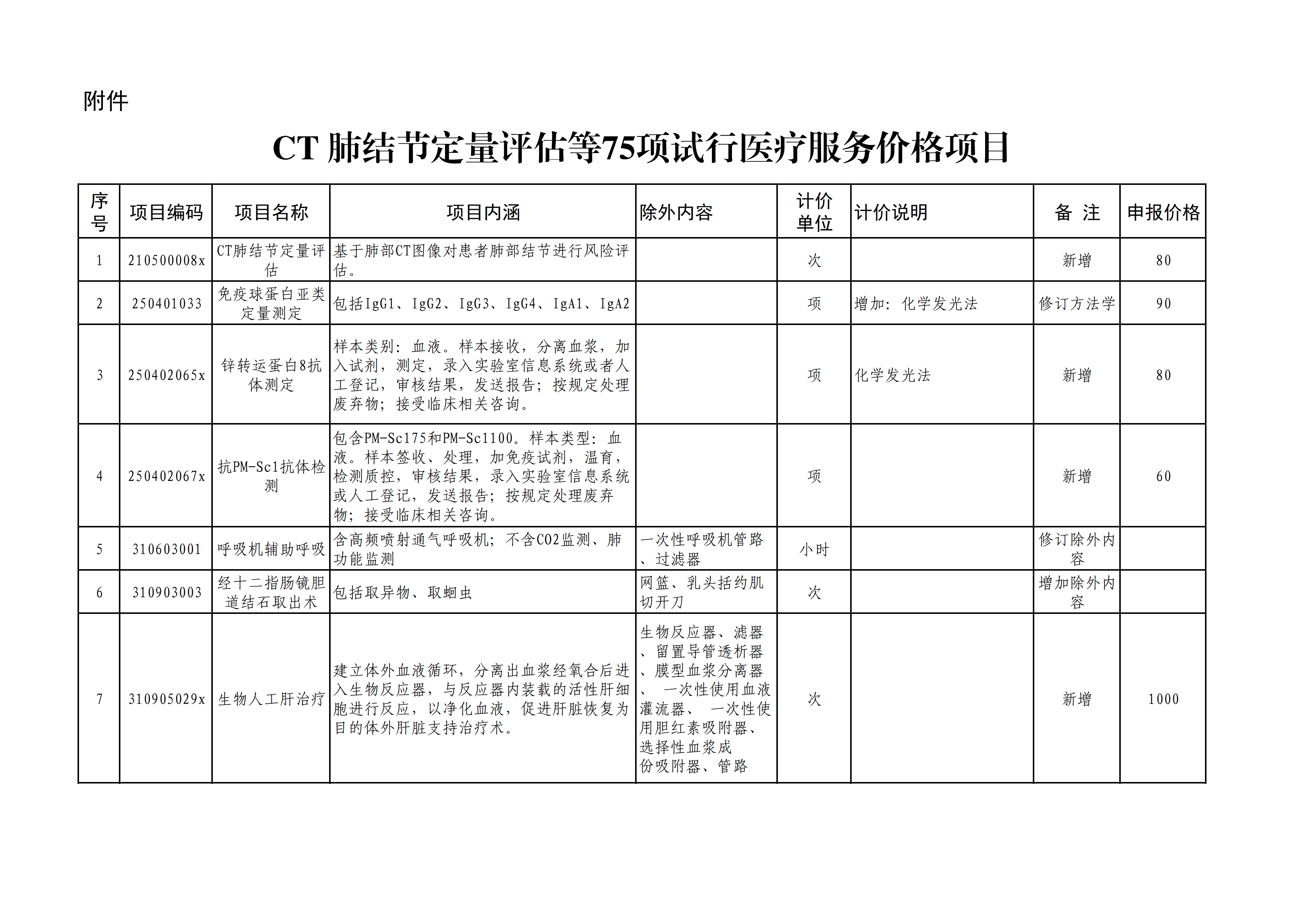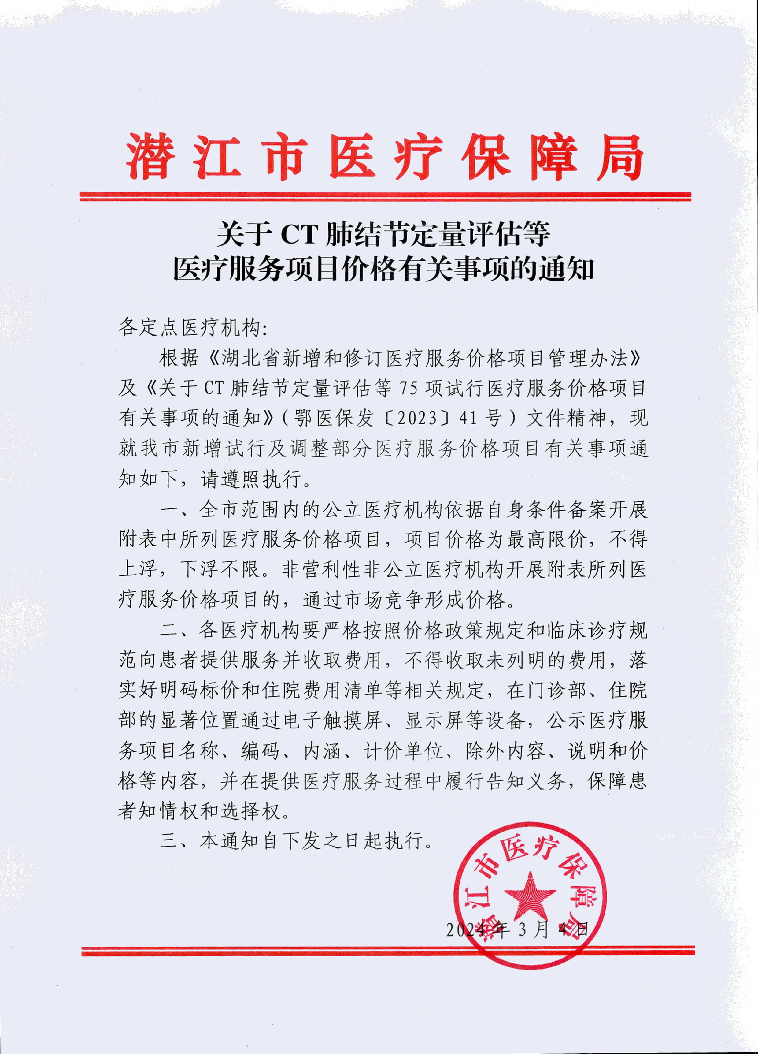 关于CT肺结节定量评估等医疗服务项目价格有关事项的通知