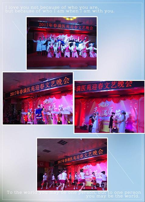 元月12日、13日晚,由院工会主办的《春满医苑》迎春文艺晚会分别在广华院区和五七院区举行。院领导和广大员工家属欢聚一堂观看了演出。
