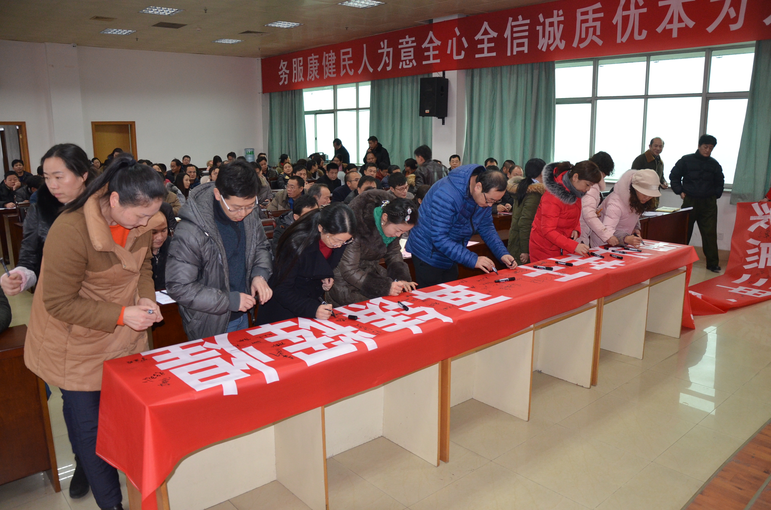 全体与会人员在“聚焦三甲,众志成城,埋头苦干,再铸辉煌”的三甲复审誓词条幅上签名,表达全身心投入三甲复审工作的决心。