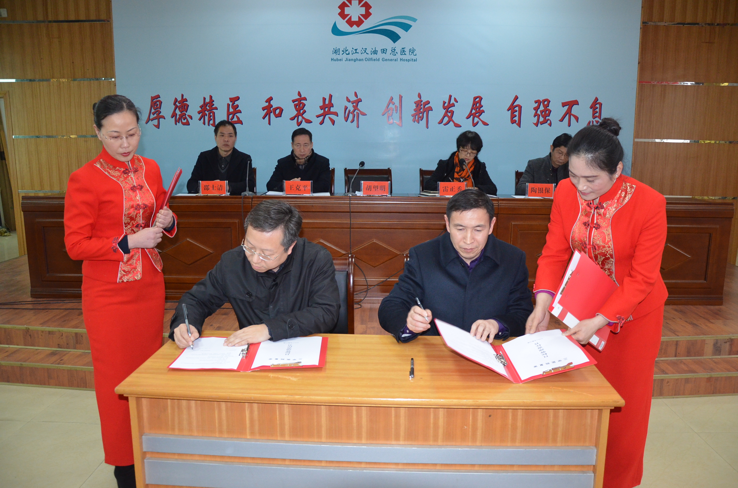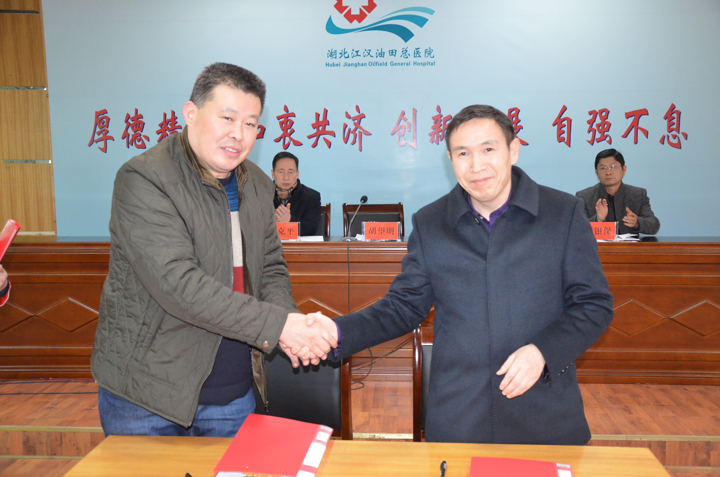 董事长、党委书记胡望明与广华院区外二科副主任何华、五七院区内二科主任刘志刚签订了《三甲复审目标管理责任书》。