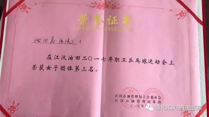 油田总医院在江汉油田2017年职工乒乓球运动会中取得优异成绩