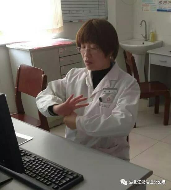 刘医生看完就诊的病人,配合我们进行了洗手!