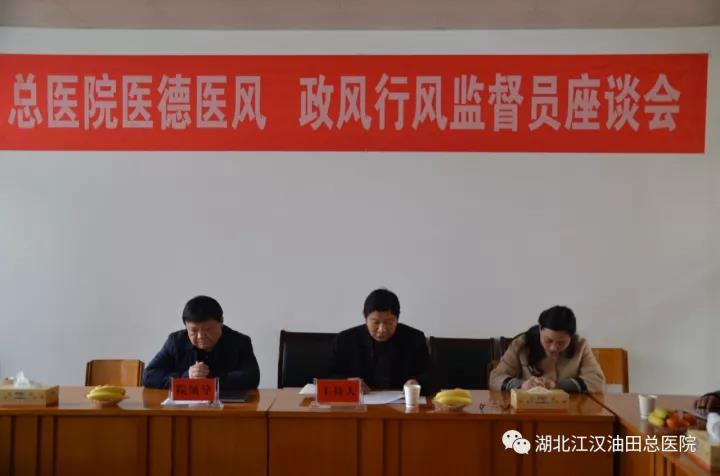 11月24日,油田总医院召开了2017年“总医院医德医风 政风行风监督员座谈会”,广泛征集社会各界、周边单位对医院发展建设的意见和建议。12名医德医风、政风行风社会监督员代表参加会议。会议由油田总医院党委副书记陶银保主持。