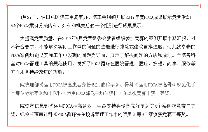 油田总医院开展PDCA成果展示竞赛