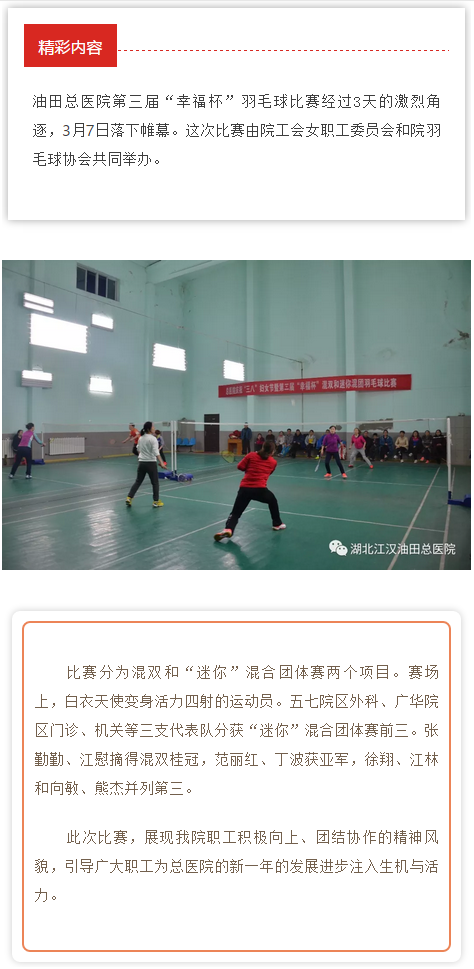 2018年油田总医院第三届“幸福杯”羽毛球比赛落下帷幕