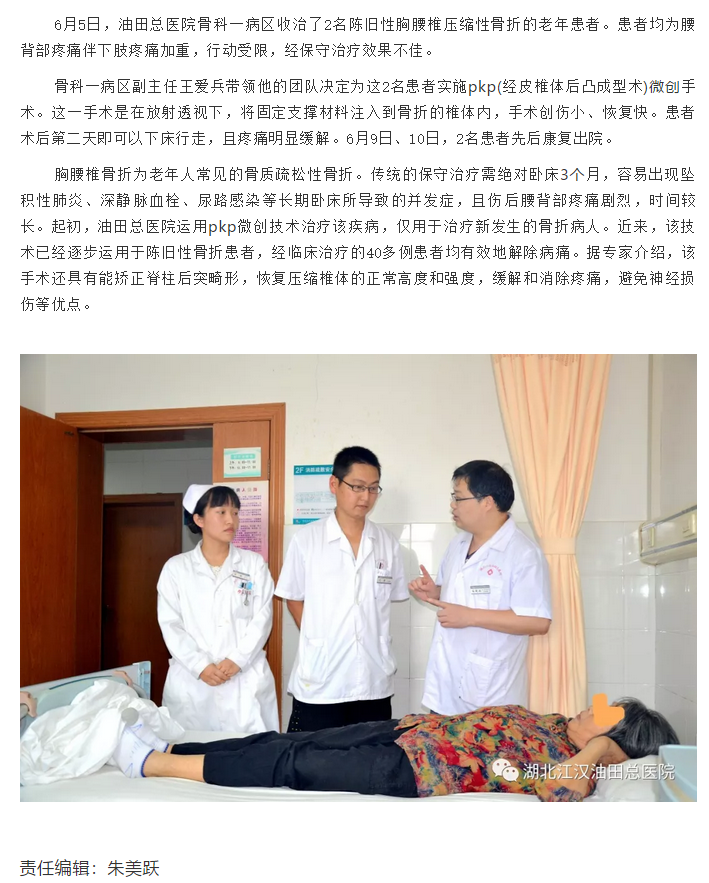 油田总医院治疗老年人胸腰椎骨折有了新方法