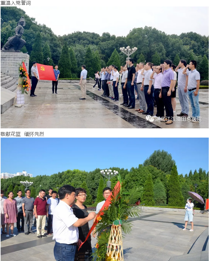 7月7日、7月14日,油田总医院党委先后两次组织65名模范、优秀党员、党务干部和新党员等赴红安开展“红色教育、追忆红色记忆”主题党日活动。油田总医院党委书记、董事长胡望明、党委副书记、院长雷正秀等院领导共赴红安教育实践基地,踏寻红色遗迹,重温革命道路。