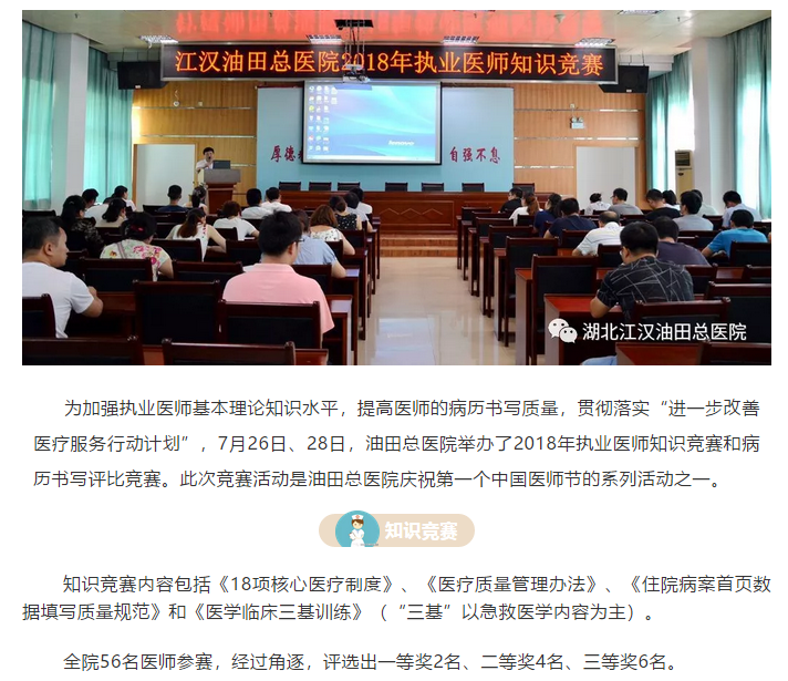 油田总医院举办2018年执业医师知识竞赛和病历书写评比竞赛