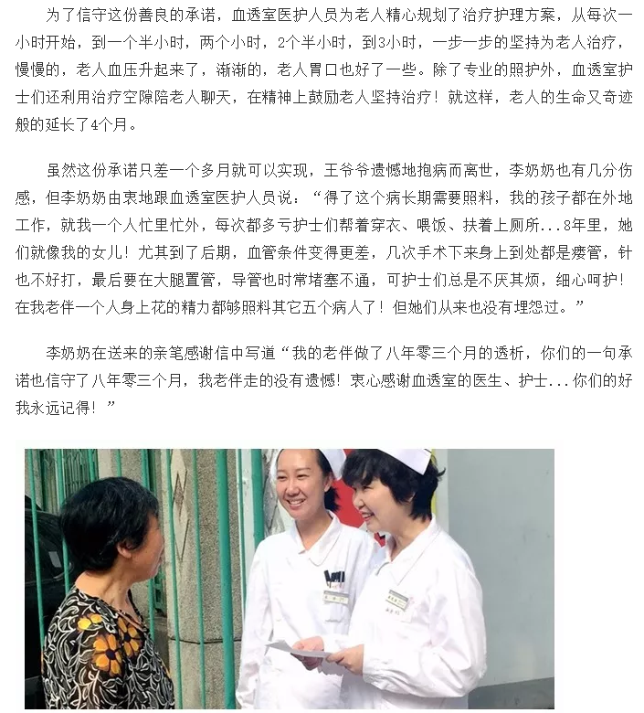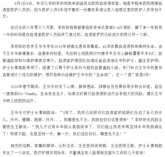 油田总医院血液透析室:信守一份善良的承诺