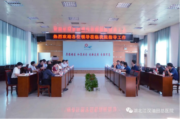 9月7日下午江汉油田、国投健康产业来到油田总医院调研康养资源。油田总医院领导班子参加了调研会。