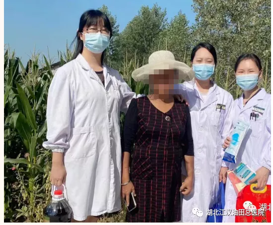 在潜江市园林镇紫月村,走访慰问了一位顽固性高血压透析肾友,欧阳梅护长现场指导他如何居家血压监测。周小栋医生还认真查看了他的用药情况,并重新搭配了用药方案。患者开心的连声道谢。