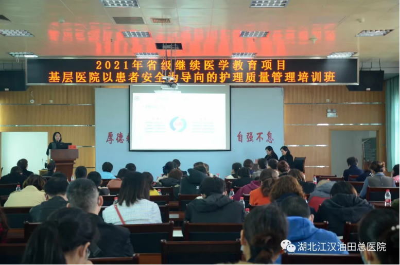 由油田总医院护理部主办的省级继续教育项目“以患者安全为导向的护理质量管理培训班”,经过精心筹备,于11月6日在医院门诊12楼学术厅正式开班。培训班邀请武汉大学人民医院东院区党委书记鲜于云艳教授、护理办公室文丽主任和油田总医院护理部副主任袁彩蓉共同授课,吸引全市各级医疗卫生机构的护理管理人员和护理骨干468人参加。
