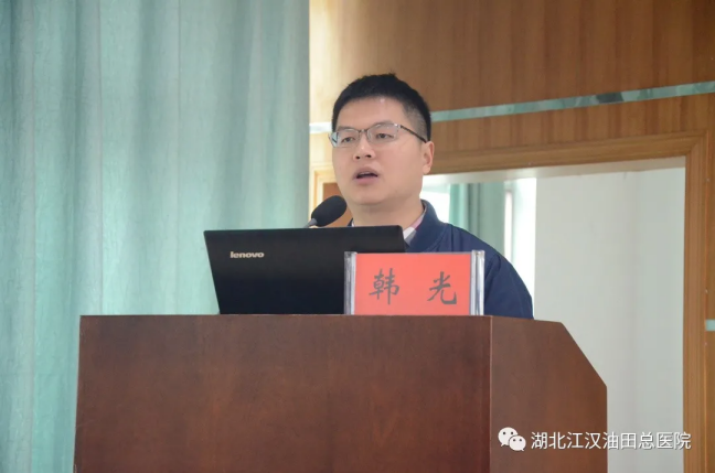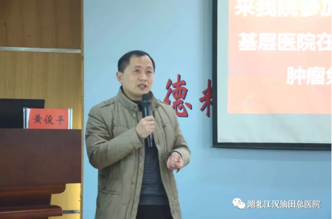 油田总医院肿瘤科副主任黄俊平主持培训班。