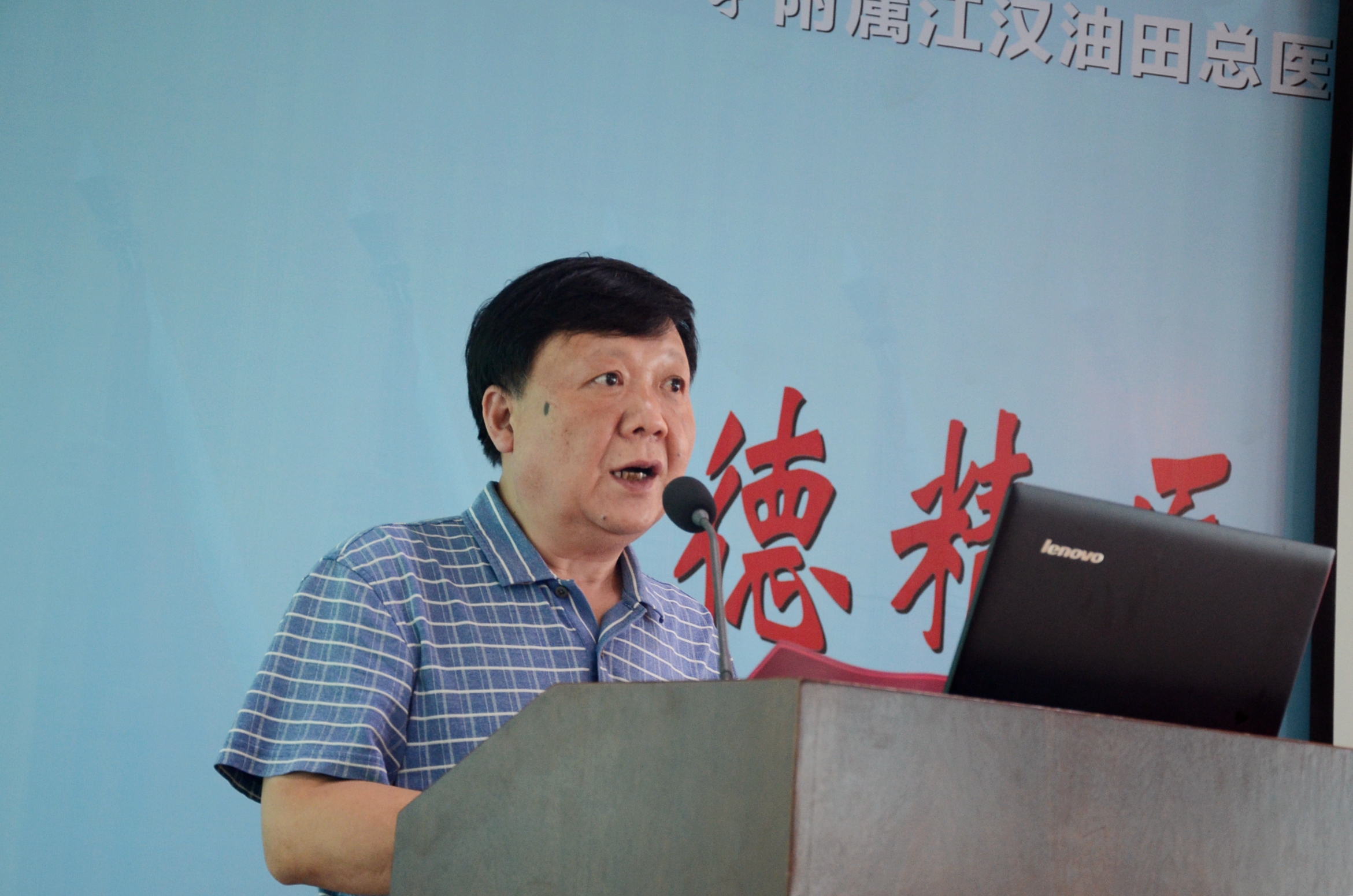 江汉油田总医院副院长廖新标代表承办单位讲话,他介绍了油田总医院培训师资情况,表示不辜负市卫健委的信任,全力办好这次培训班,让学员们收获满满、回到自己岗位后更好地开展心脑血管疾病防治工作。