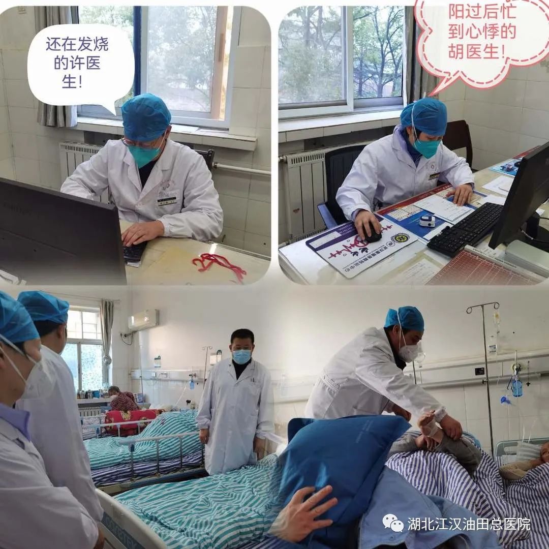 “我们不能倒下,倒下了患者怎么办?有那么多患者需要我们,再困难也要坚持下去!”综合内科副主任胡泽平沙哑着嗓子说。他感染新冠病毒高烧第二天,体温还在38℃左右,却坚持上班。“我们医生没有一个人因为生病请假,胡丽君大夫也是未康复就上班,一天收了12个病人,还有危重病人抢救,忙到心动过速,却还在坚持,没有请假!”刘志刚主任介绍说。尽管每天都有医护人员发烧、咳嗽、头晕、全身疼痛,但是大家还是积极应对当前的医疗救治压力,尽最大可能让每一位患者得到及时救治!
