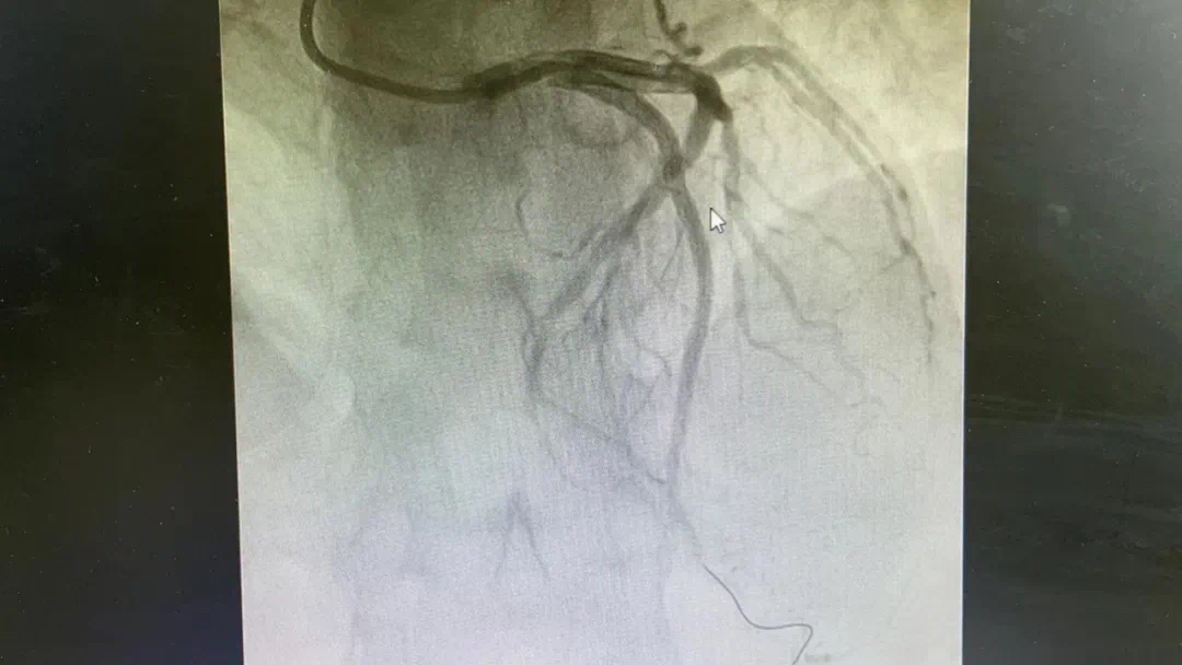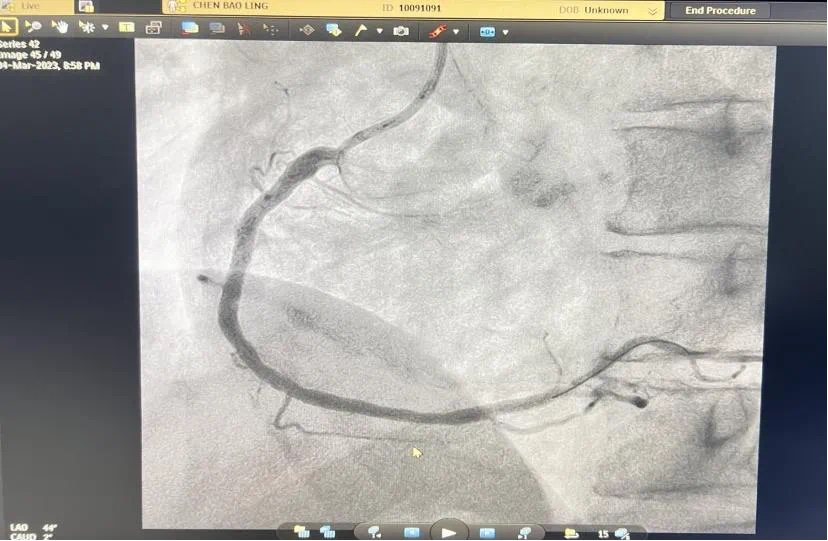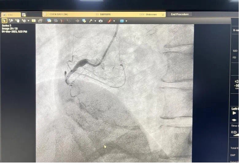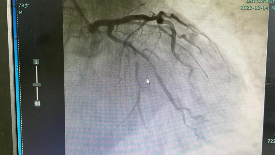 3月4号晚,总医院一个不平凡之夜。19点44分,急诊科汪小卫医生在胸痛中心微信群发送了一条信息:患者程某心电图检查结果。心内科副主任何涛马上回复:患者确诊为急性下壁ST段抬高型心肌梗塞并一键启动导管室,医生熊俊锋、导管室张梅梅立即奔赴导管室穿好铅衣备好急救药品物品,打开除颤仪做好手术准备。19点54分,激活导管室。20点08分患者被送入导管室快速实施冠脉造影,显示患者右冠近段粥样硬化伴“瘤样扩张”,中段发生完全闭塞。结合心电图考虑堵塞血管为右冠,于20点27分成功开通堵塞血管。患者从医院大门到开通血管仅50分钟,大大缩短心肌获得灌注时间,心功能基本不受影响。 术中险象环生,患者心率进行性下降,血压反复异常,经医护人员的及时救治,患者转危为安被安全护送回病房。术前、术后图片如下
