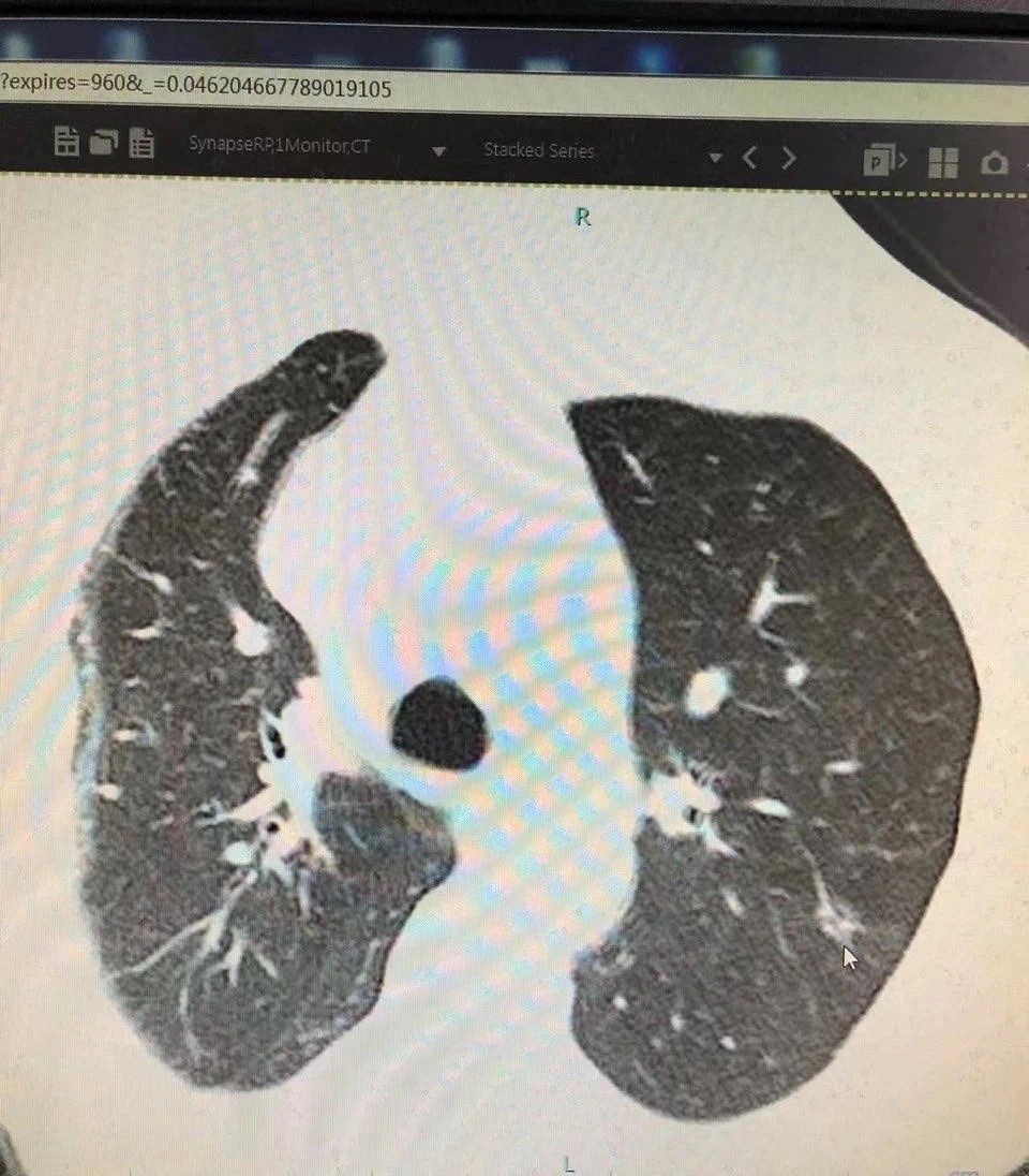 今年73岁的患者宋女士在两年前的体检中发现肺部磨玻璃结节。按照医嘱,宋女士定期在我院门诊复查。在今年3月的检查中发现,患者左上肺结节已扩大到5X8mm左右,且实性成分也比之前增加,形态也发生了变化,引起胸外科主任李政圣的注意。