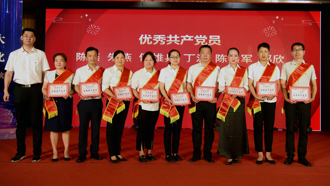预备党员进行了集中宣誓,党群工作部主任朱美跃领誓,现场全体党员同志重温入党誓词,重忆入党初心。会议对3名优秀党务工作者、44名优秀共产党员和2个先进基层党组织进行了表彰。