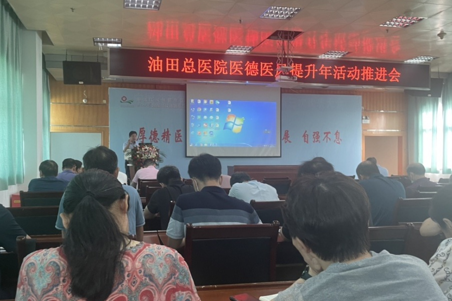 为进一步推进医德医风提升年活动的开展,加强清廉医院建设,7月18日,我院召开了医德医风提升年活动推进会。会上强调:要牢记全心全意为人民服务的根本宗旨,严格规范诊疗行为,因病施治,推进合理检查、合理用药、合理治疗,认真开展不合理医疗检查及用药突出问题整治工作,遵纪守法,廉洁行医,深入推进清廉医院建设,加强医疗行业规范管理。