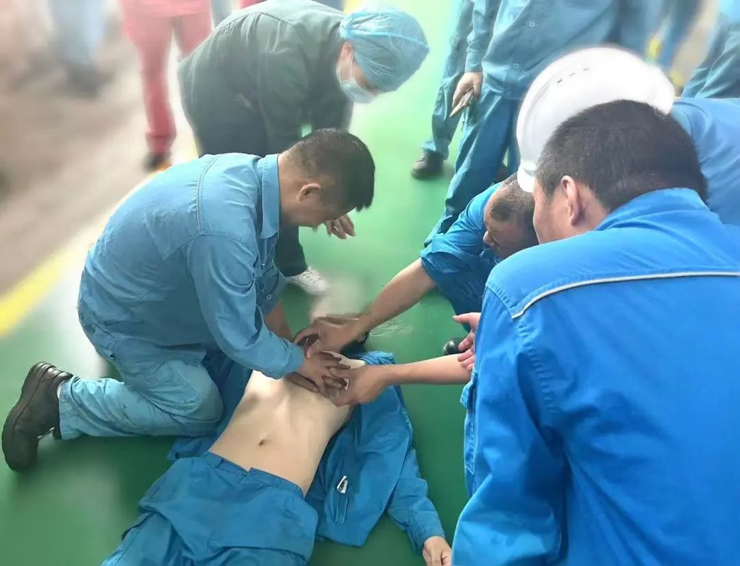 本次培训吸引了井下动力钻具厂车间员工的关注和参与。培训内容主要包括识别突发状况、呼叫急救、心肺复苏等必要的快速援救措施。培训现场,我院护理人员用专业的理论知识,重点讲解了如何抢抓心肺复苏黄金4分钟,并用通俗易懂的语言向员工们普及心肺复苏知识,进行了分解式的演示和手把手地操作实践,把每一个重要的应急救护知识和动作都教给单位员工,把有效的抢救技术传授给大家,使车间员工们对心肺复苏术有了更深入的认识和掌握。