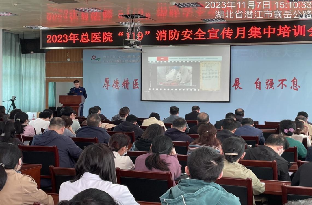 11月7日,医院组织举办“119”消防安全宣传月集中培训会,邀请油田消防救援大队大队长陈同茜为医院中层以上干部、消防管理员、保安、保洁授课,共210余人参加了此次培训。陈同茜大队长从火灾的预防、初期火灾的扑救、人员的疏散、火场逃生自救和现实案例等方面作了详细讲解,结合医院人员流动性大、患者多等特点,对消防重点、难点等问题进行了剖析,重点讲解了火灾预防和逃生自救的相关知识和技巧。培训会内容丰富实用,让员工在学习中不仅能够增长知识,还能够加深对消防安全工作的认识。