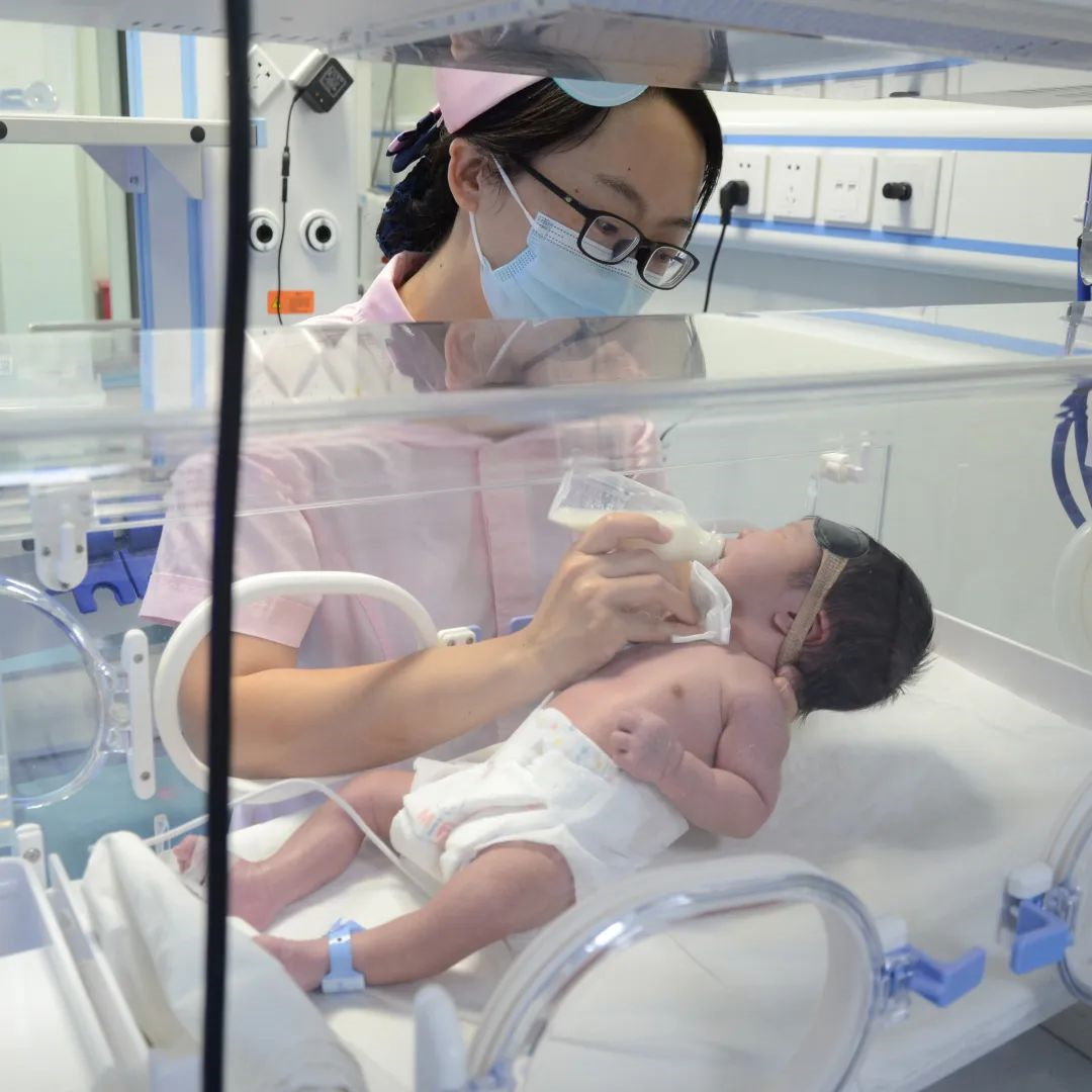 给小毛毛喂的奶,都是按时定量,配比标准的,由于母婴分离,有的父母担心孩子吃不到母乳,新生儿病房也会安排医护人员接收母乳,做好储存,并按需喂给宝宝。