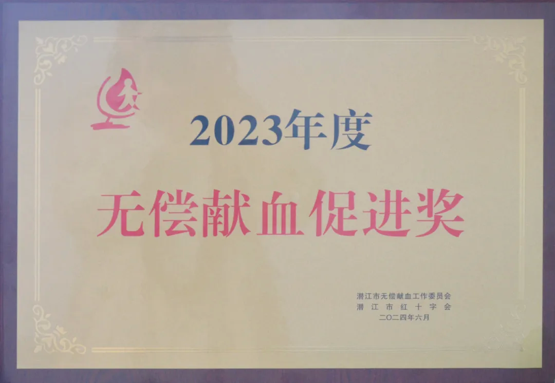 6 月 13 日,潜江市无偿献血表彰会隆重举行,在此次大会上,我院凭借其在无偿献血事业中的卓越表现和积极贡献,荣获了“无偿献血促进奖”。