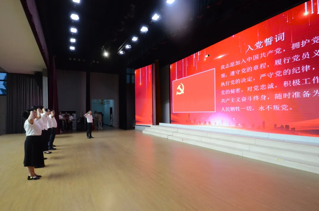 大会在庄严的国歌声中拉开序幕。6名预备党员进行了集中宣誓。