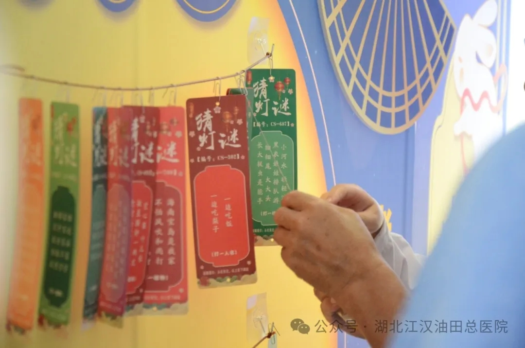 紧随其后的猜灯谜活动让现场气氛活跃不已,患者及家属们围在展板前选择灯谜,猜对的患者还获得了小奖品,整个现场充满了欢声笑语。