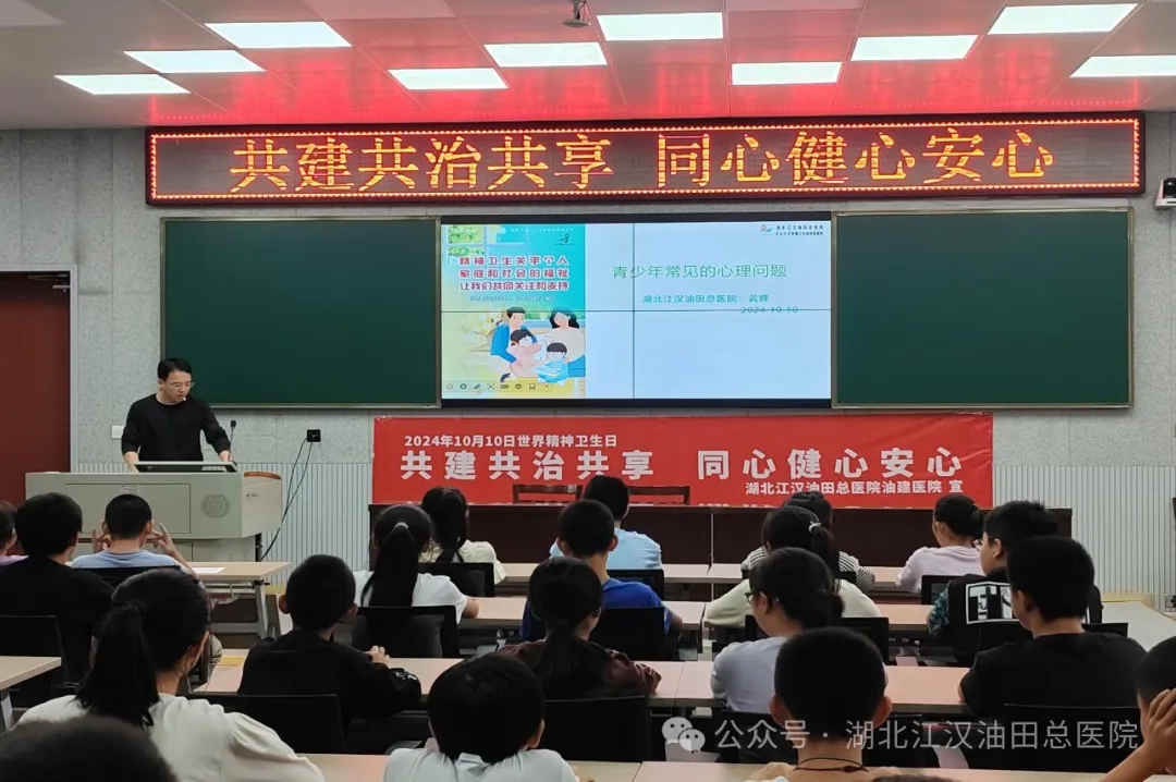 2024年10月10日,正值第34个世界精神卫生日,今年的宣传主题为“共建共治共享,同心健心安心”。为积极响应这一主题,我院精神科在广华中学开展了一场以心理健康为主题的健康讲座,旨在提高广大学生对心理健康的重视程度,促进学校心理健康教育工作的深入开展。