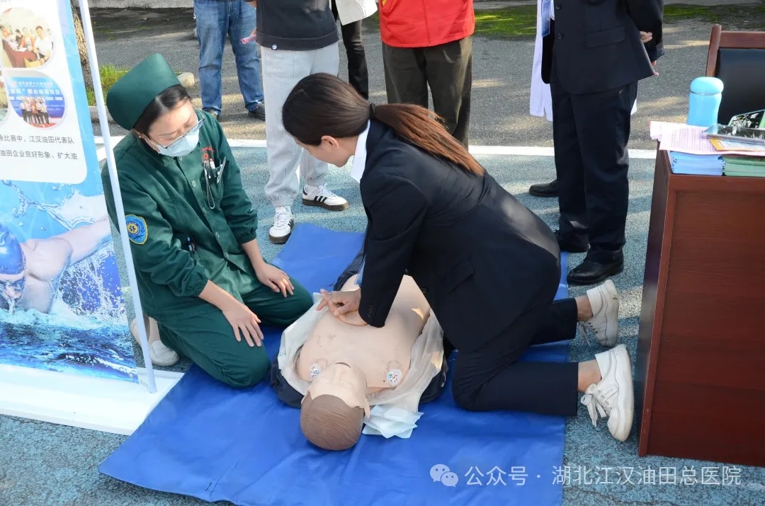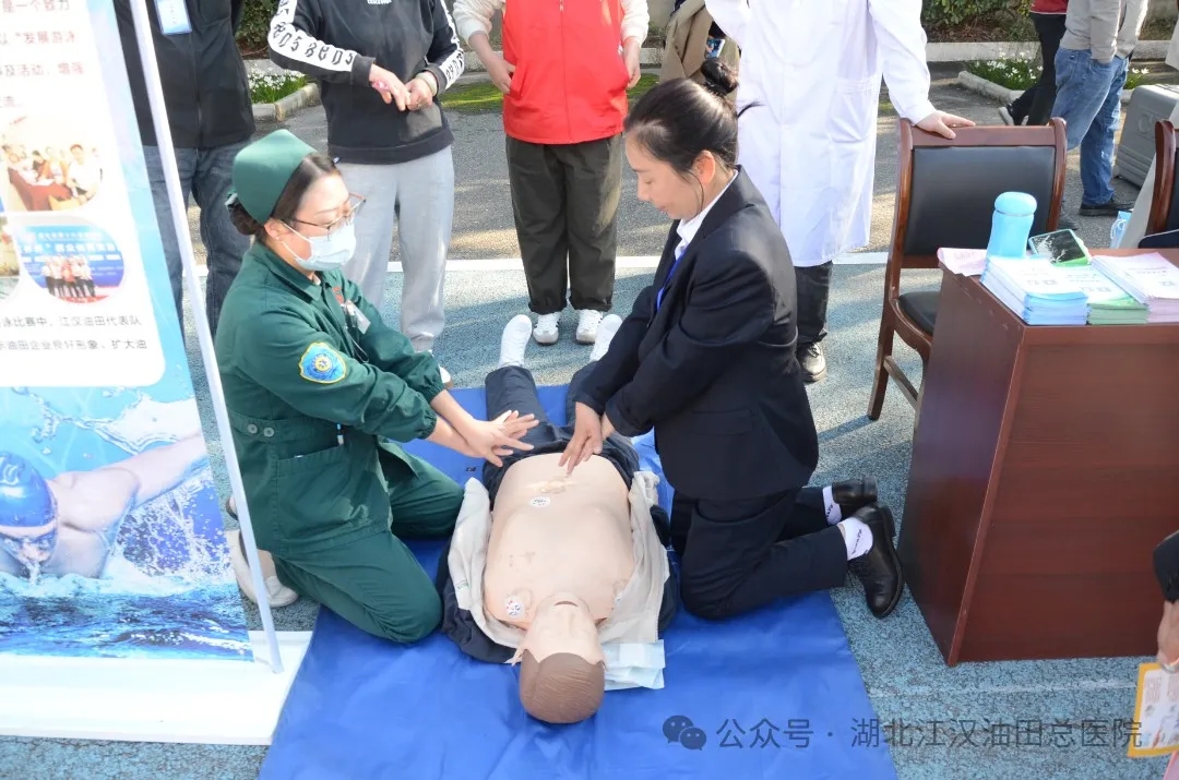活动现场还特别设置了急救知识讲解区。在这里,医护人员化身“健康卫士”,手把手教授心肺复苏术(CPR)、海姆立克急救法等实用技能,活动现场精心准备了一系列宣教手册,涵盖糖尿病预防、深静脉血栓预防及医保亲情账户绑定教程等内容,旨在全面提升民众的自我保健意识和能力。